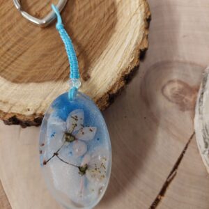 Breloki z żywicy epoksydowej i zatopionych w niej roślinach.